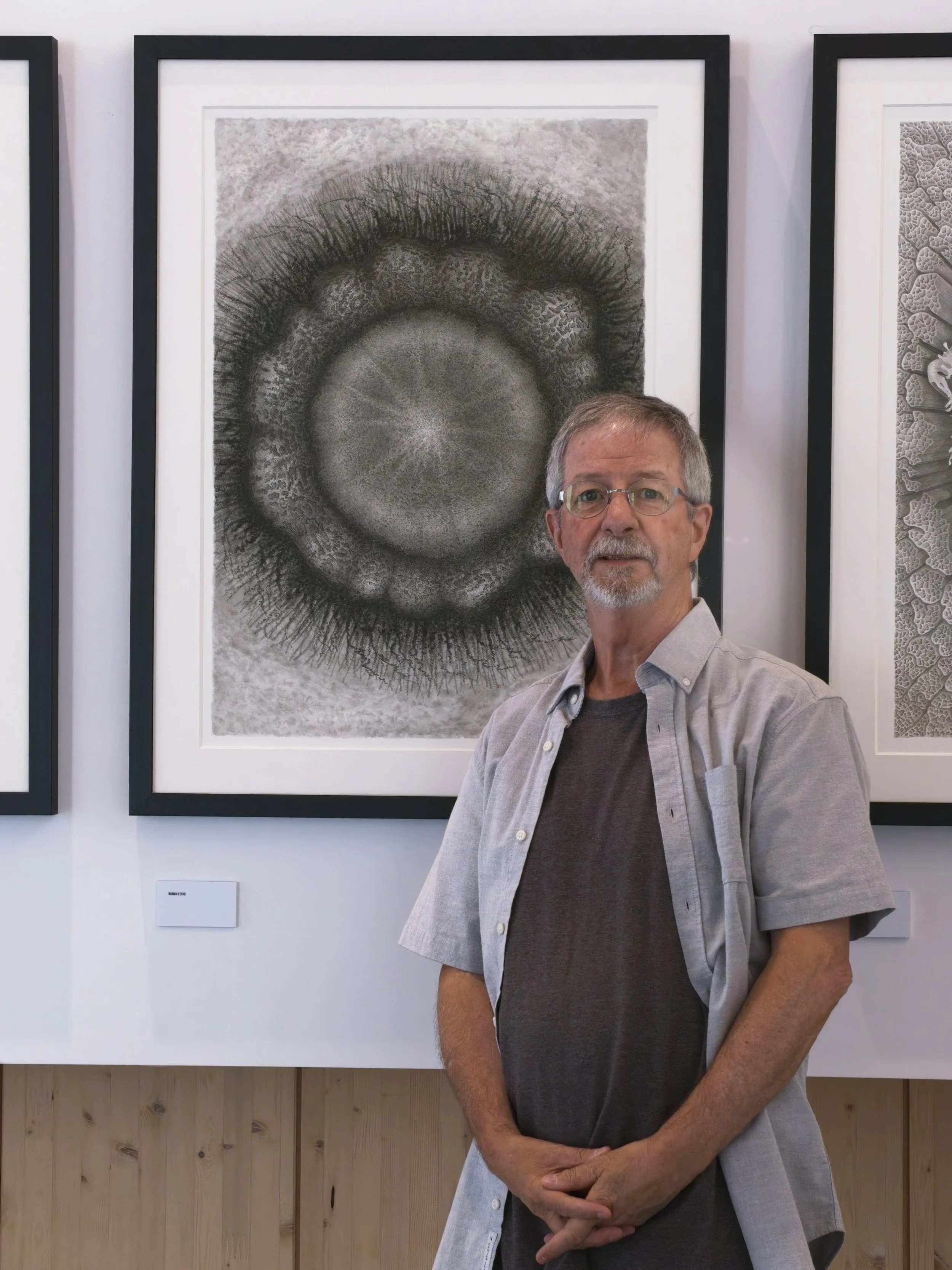 Depuis plus de 5 décennies, il a méticuleusement dessiné, photographié et intuitivement plus que systématiquement observé le monde des structures organiques. La force vitale et l’intelligence unique de ce monde, qui se déploie sous des formes infinies ne cessent de le fasciner. Ces formes sont réinventées dans son imaginaire dans des œuvres de beautés poétiques ou comme une fenêtre sur un royaume métaphysique.