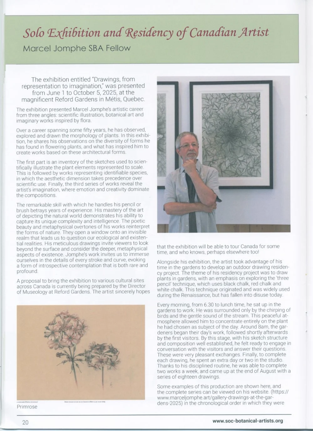 Le magazine de la Society of Botanical Artists, dont je suis “Fellow Member”, est publié deux fois l’an, le printemps et l’automne. J’ai un article de deux pages dans le numéro de l’automne 2025 au sujet de ma récente exposition solo aux Jardins de Métis et de la technique des trois crayons que j’ai utilisée pendant l’été lors de ma résidence dans les jardins.